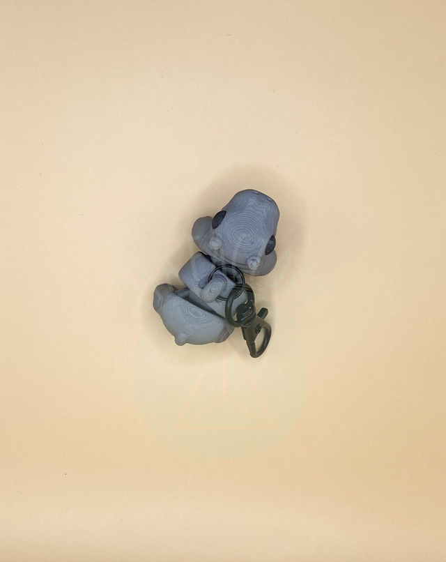 Ce modèle de porte-clés Hippopotame articulé imprimé en 3D est fabriqué à partir de PLA (un matériau biodégradable, non toxique, principalement réalisé à base d’amidon de maïs).