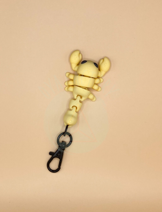 Ce modèle de porte-clés de Scorpion articulé imprimé en 3D est fabriqué à partir de PLA (un matériau biodégradable, non toxique, principalement réalisé à base d’amidon de maïs).
